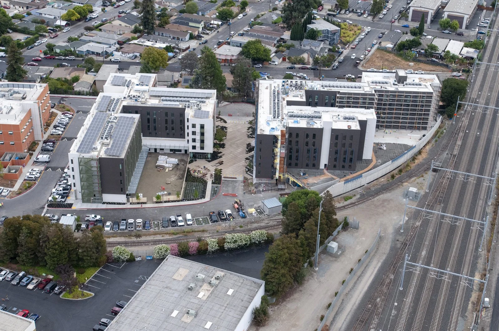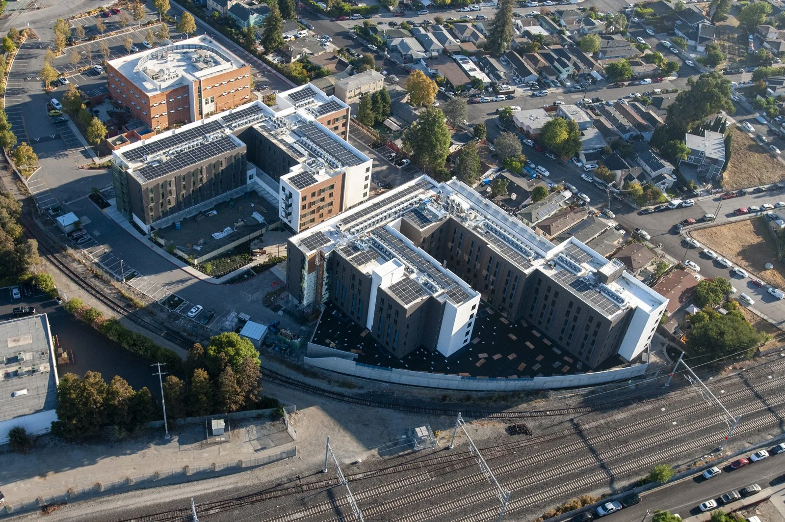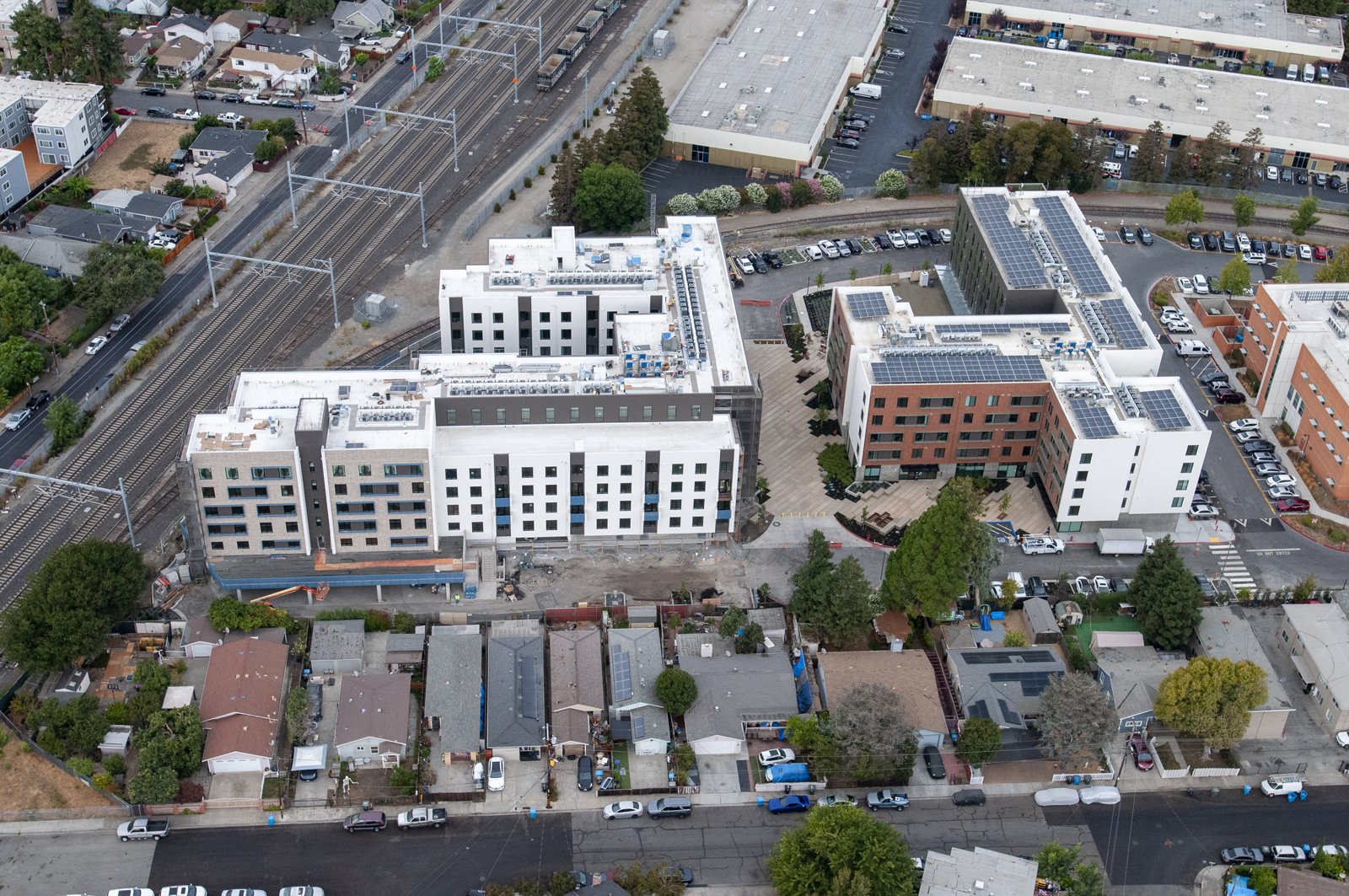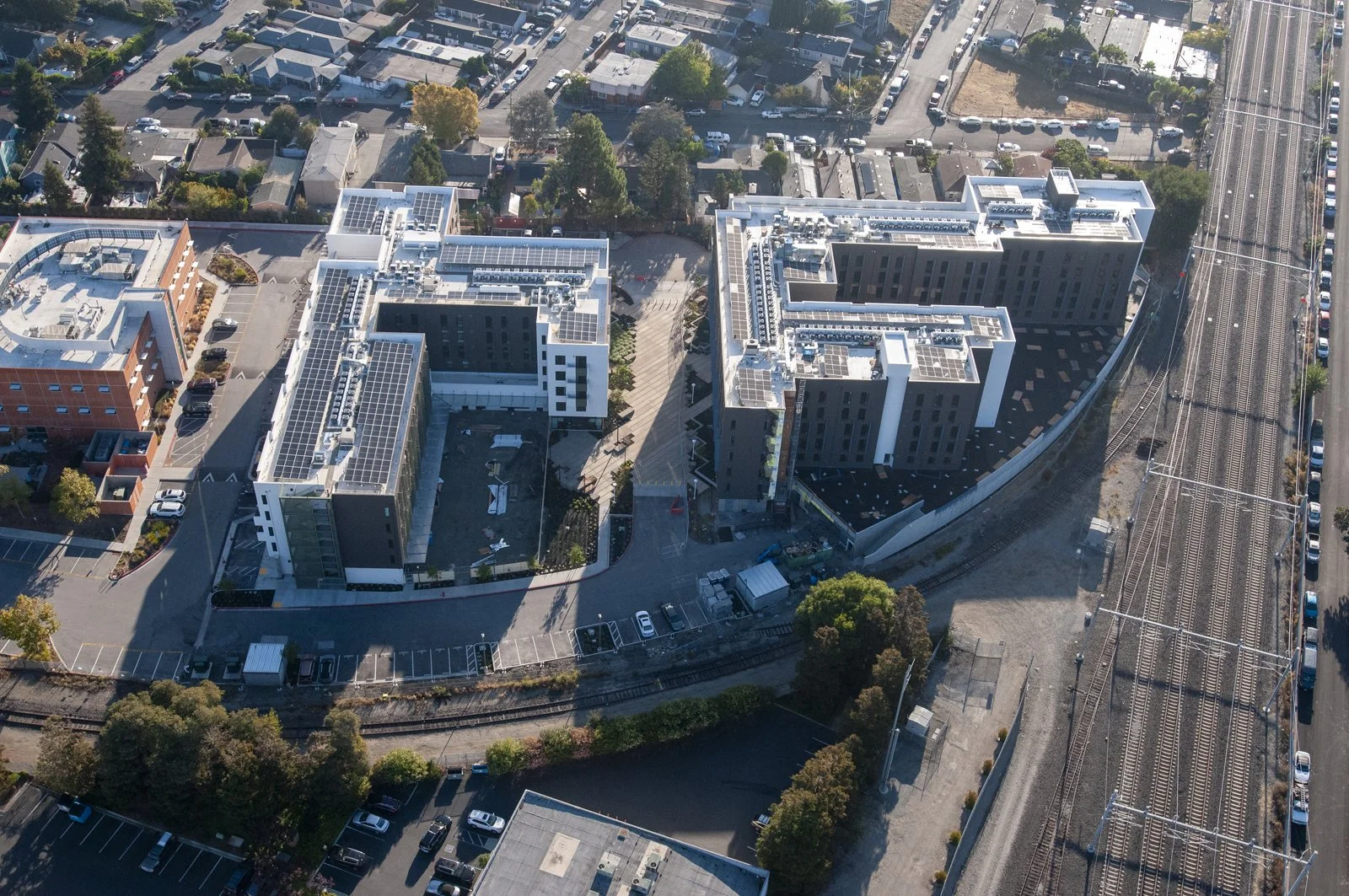 Project is a mixed-use development including affordable housing, childcare center and community center. Housing consists of two buildings on a 3.2 acre site with a pedestrian mews between the buildings. Buildings are wood frame over concrete podium.